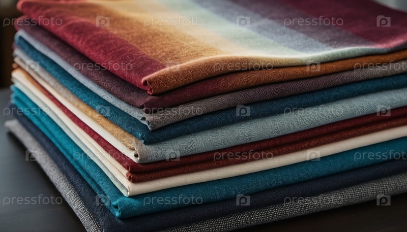 Привлекательное расположение образцов тканей в различных цветах демонстрирует текстуры, идеально подходящие для обивки мебели. Каждый элемент предлагает уникальный стиль, улучшая эстетику интерьера. Генеративный ИИ