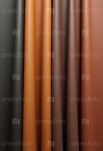 Коллекция образцов настоящей свиной кожи различных насыщенных цветов изящно висит на стене, подчеркивая ее уникальную текстуру и мастерство изготовления