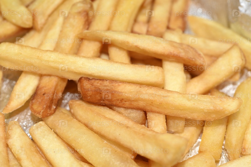 Картофель фри в алюминиевой фольге. Жареный картофель в упаковке. Фастфуд