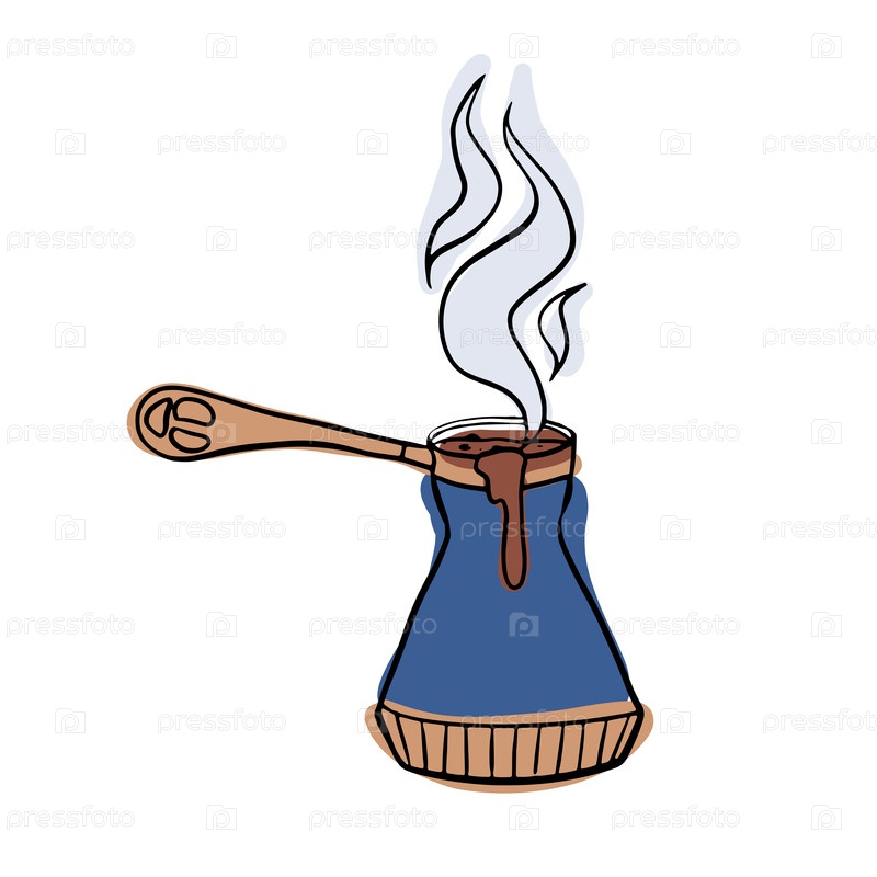Классический турецкий кофейник с дымящимся темным кофе. Уютная иллюстрация, представляющая насыщенный аромат, традиционное заваривание и любовь к настоящему турецкому эспрессо