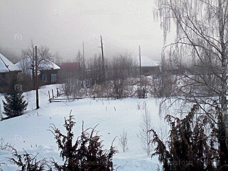 Гололедно-изморозевый туман над деревней