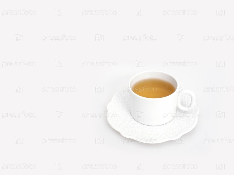 Фарфоровая чашка с чаем на белом фоне. Элемент дизайна с обтравочным контуром