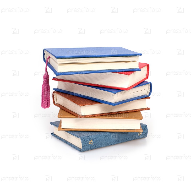 Стопка книг в цветных обложках с белыми листами, изолированных на белом фоне
