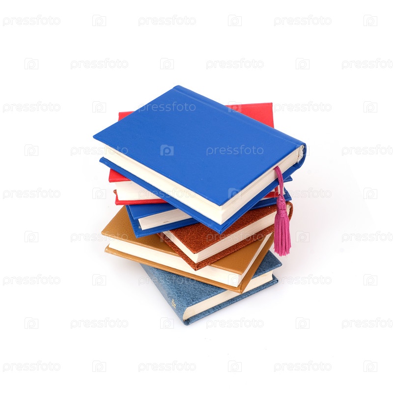 Стопка книг в разноцветных обложках, изолированная на белом фоне