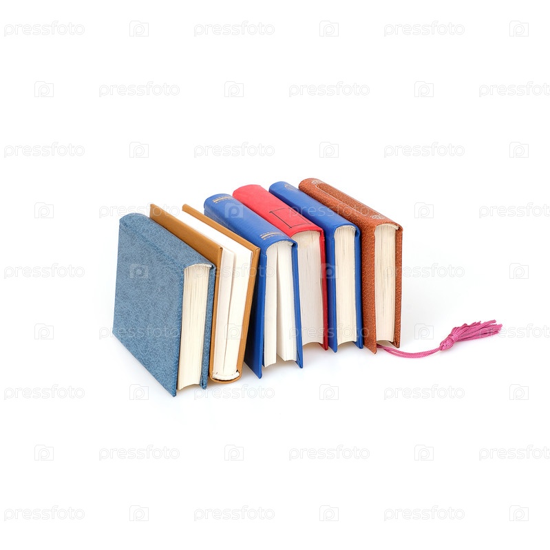 Стопка книг в цветных обложках с белыми листами, изолированных на белом фоне