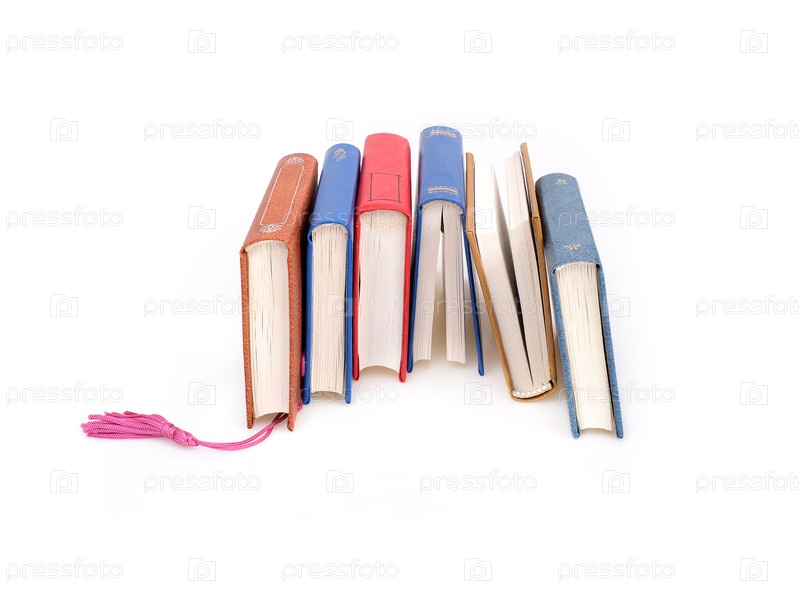 Стопка книг в разноцветных обложках, изолированная на белом фоне
