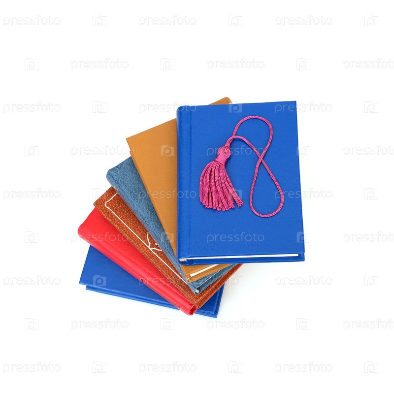 Стопка книг в цветных обложках с белыми листами, изолированных на белом фоне