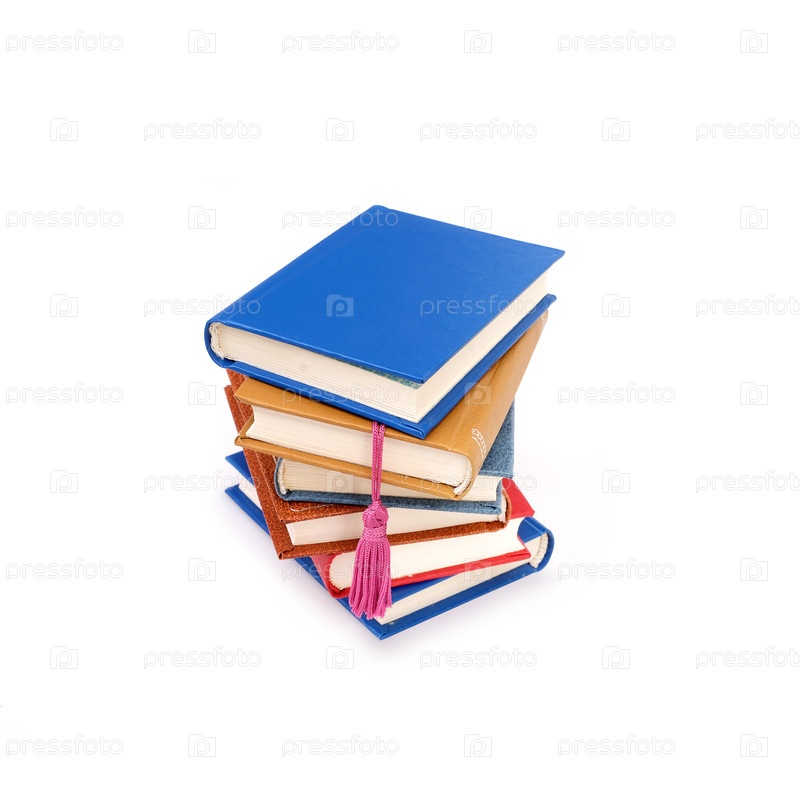 Стопка книг в разноцветных обложках, изолированная на белом фоне