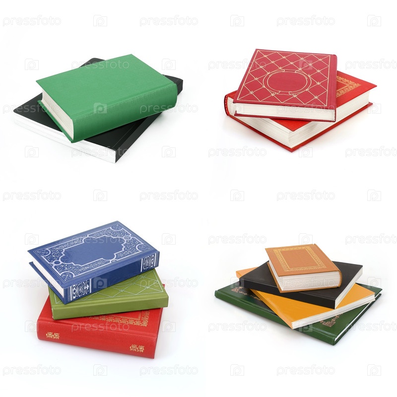 Набор из стопки книг в цветных обложках с белыми листами, изолированных на белом фоне