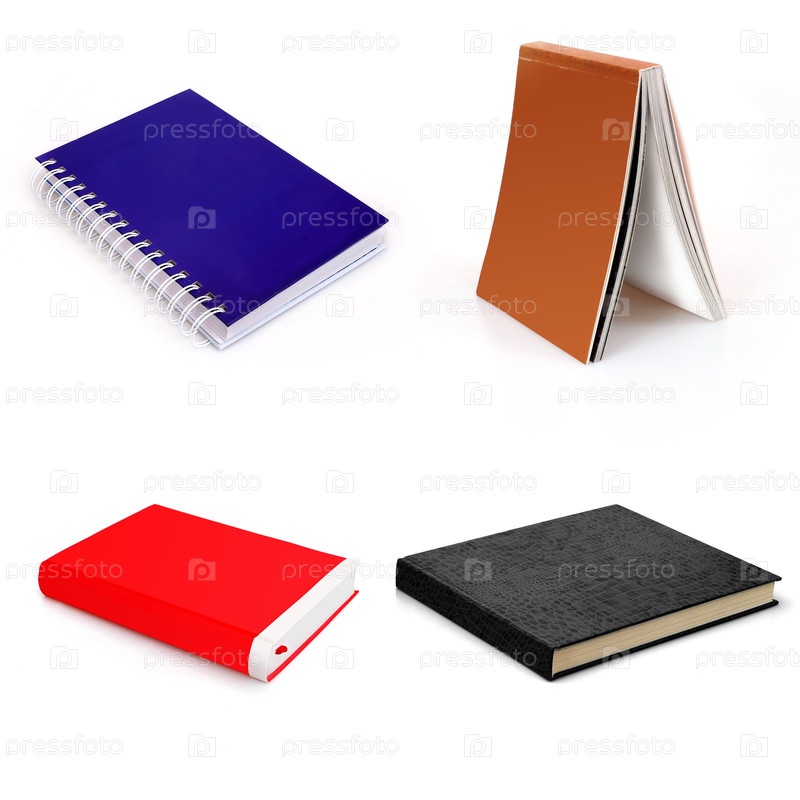 Набор из стопки книг в цветных обложках с белыми листами, изолированных на белом фоне