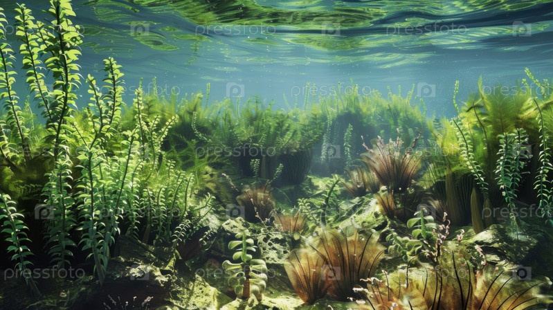 Красочная водная жизнь с кораллами, водорослями и солнечными лучами. Динамичная морская экосистема, идеально подходящая для дайвинга, исследования океана и концепций биоразнообразия