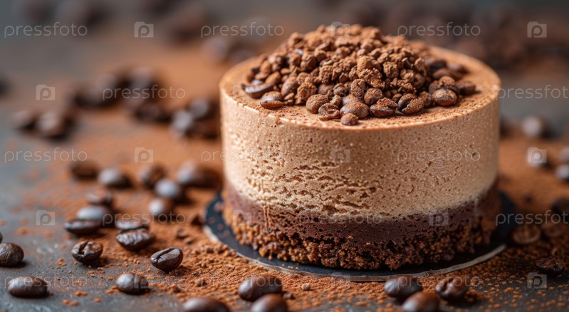 Муссовый торт мокко с какао и кофейными зернами. Слоистый десерт с кремовой текстурой, изысканным вкусом и элегантной подачей для кулинарных энтузиастов. Цвет года