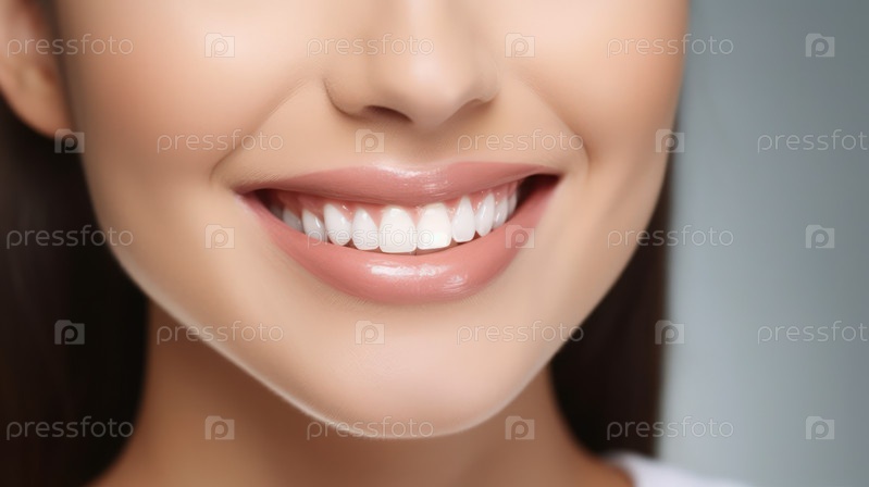 Красивый крупный план блестящей улыбки с блестящими белыми зубами, олицетворяющими уверенность, красоту и благополучие. Отлично подходит для косметических или стоматологических дизайнов