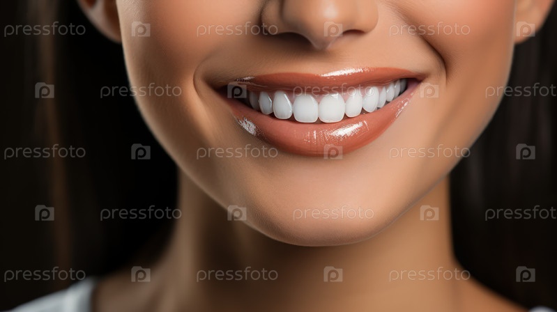 Сияющий крупный план яркой женской улыбки, демонстрирующей здоровые белые зубы. Идеально подходит для тем о стоматологии, красоте или уходе за кожей, способствующих укреплению уверенности и здоровья полости рта