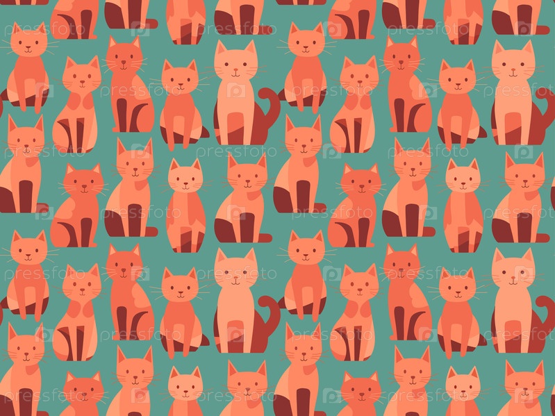 Бесшовный рисунок милые оранжевые мультяшные коты на бирюзовом фоне