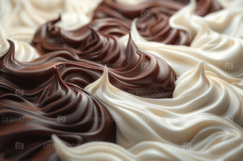 Шелковистые шоколадные и ванильные сливочные волны закручиваются вместе в художественном дизайне. Гладкая текстура и насыщенный какао делают этот десерт визуально привлекательным и элегантным