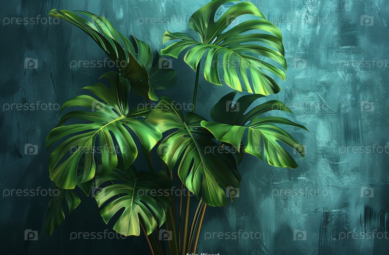 Яркие зеленые листья монстеры с яркими текстурами и абстрактными тенями. Тропический ботанический дизайн идеально подходит для современного декора и пышных, экзотических интерьеров