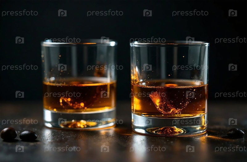 Стакан виски на темном фоне. Фото напитка бар ресторан. Генеративный искусственный интеллект