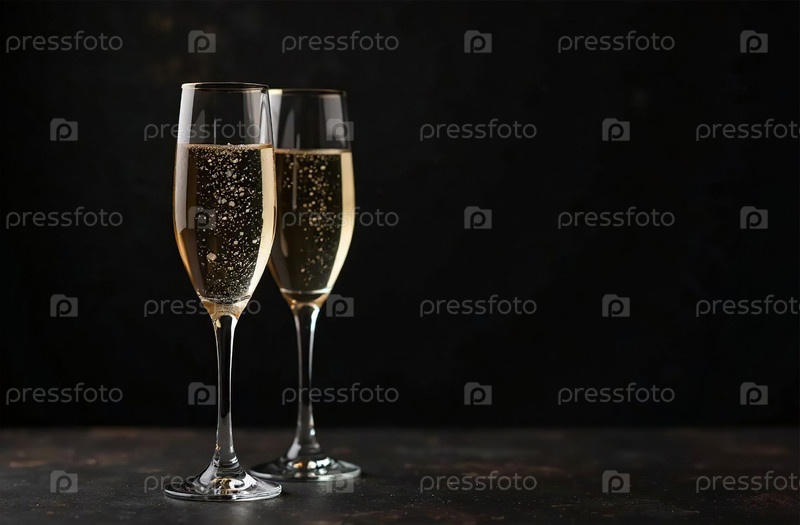 Бокал шампанского на темном фоне. Фото напитка бар ресторан. Генеративный искусственный интеллект