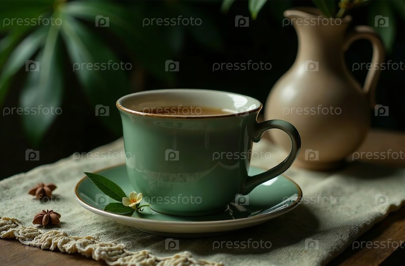 Стеклянная кружка для чая на темном фоне, напиток для меню ресторана. Генеративный искусственный интеллект