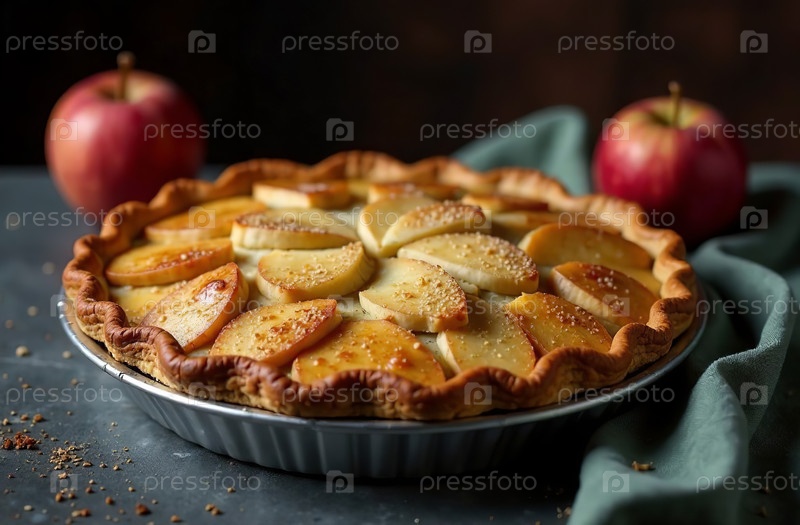 Яблочный пирог из цельных фруктов, фотография десерта для пекарни-ресторана. Генеративный искусственный интеллект