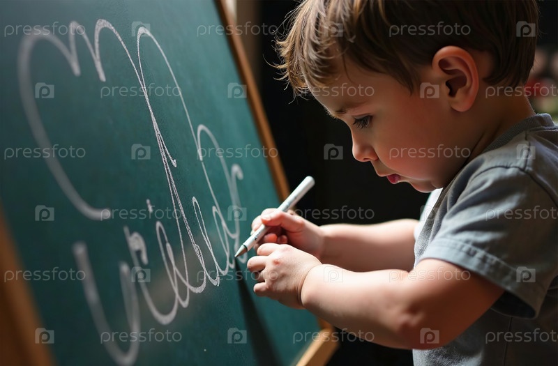 Детская доска для рисования игрушек в игровой комнате, ребенок пишет рисунок. Генеративный искусственный интеллект