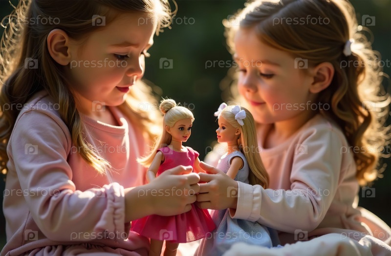 Две девочки играют с куклами в детской комнате. Генеративный искусственный интеллект