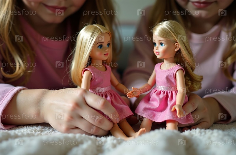 Две девочки играют с куклами в детской комнате. Генеративный искусственный интеллект