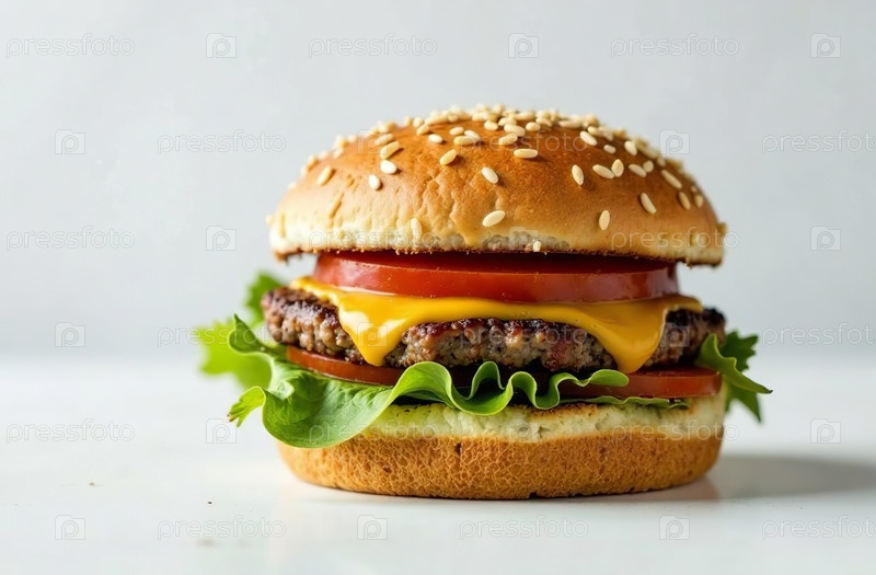 Сочная котлета бургера на светлом фоне. Еда для меню ресторана. Генеративный ИИ