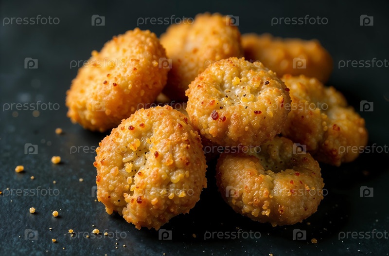 Куриные наггетсы на темном фоне, фото меню ресторана. Генеративный искусственный интеллект