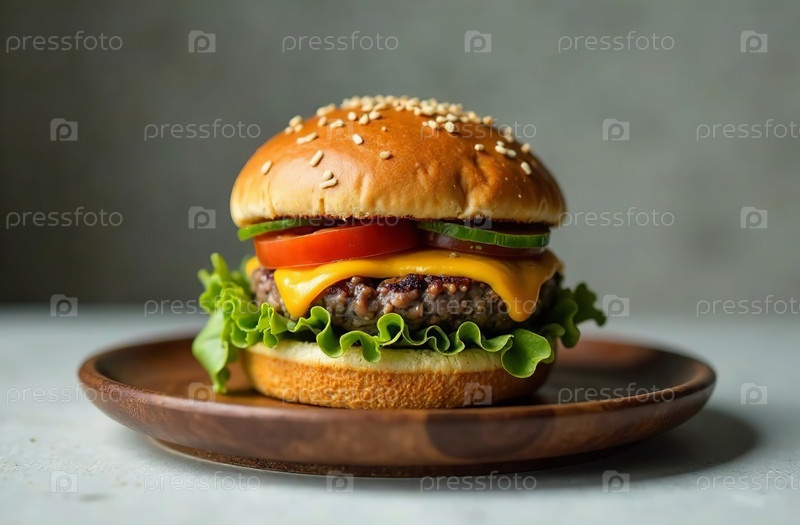 Сочная котлета бургера на светлом фоне. Еда для меню ресторана. Генеративный ИИ