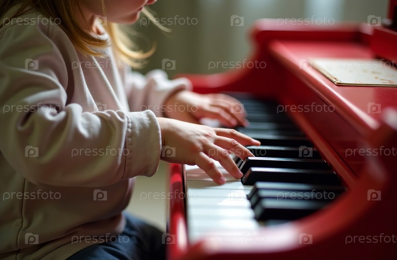 Ребенок играет на игрушечном пианино, молодой музыкант играет музыку в игровой комнате. Генеративный искусственный интеллект