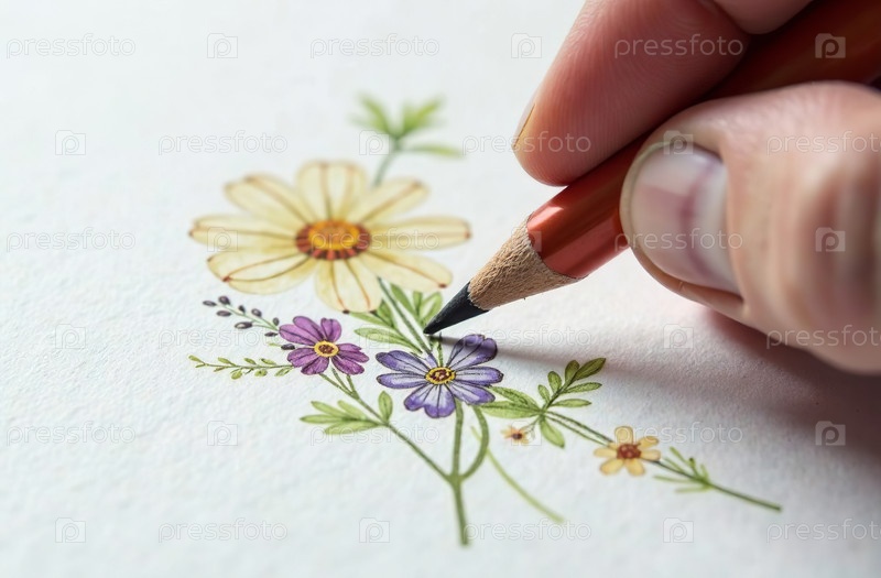 Ручной карандаш и рисунок, художественный инструмент для хобби рисования. Генеративный искусственный интеллект