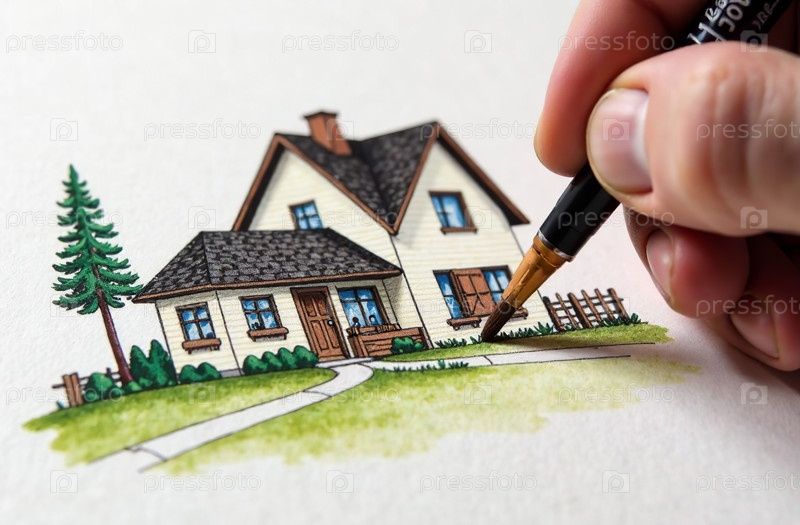 Возьмите кисть и нарисуйте дом, художественный инструмент для любителей рисования. Генеративный искусственный интеллект