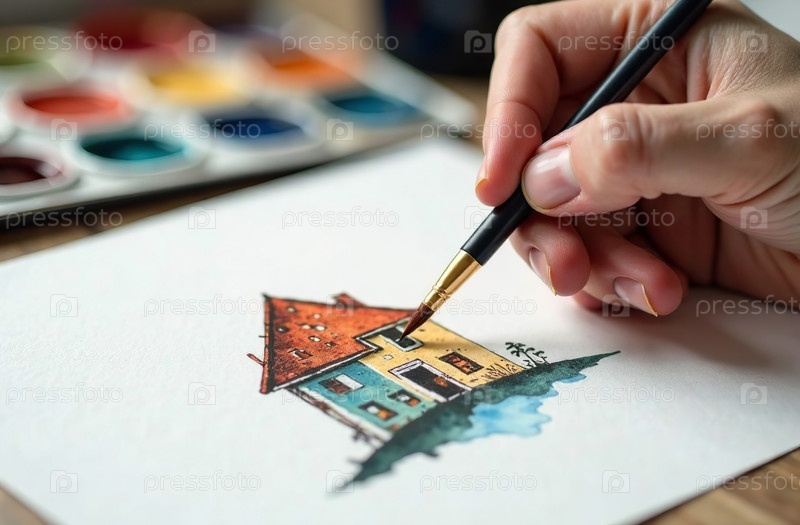 Возьмите кисть и нарисуйте дом, художественный инструмент для любителей рисования. Генеративный искусственный интеллект