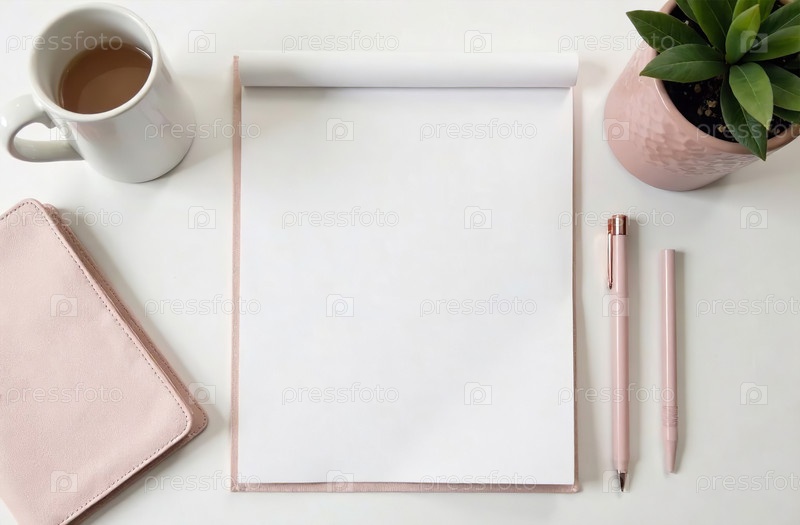 Flat Lay Office Desktop белый фон, минималистичные канцелярские принадлежности. генеративный искусственный интеллект
