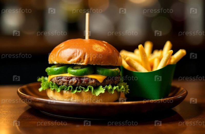 Сочная котлета бургера на темном фоне. Еда для меню ресторана. Генеративный ИИ