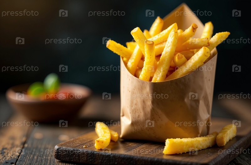 Картофель фри на темном фоне, фото еды для меню ресторана. Генеративный искусственный интеллект