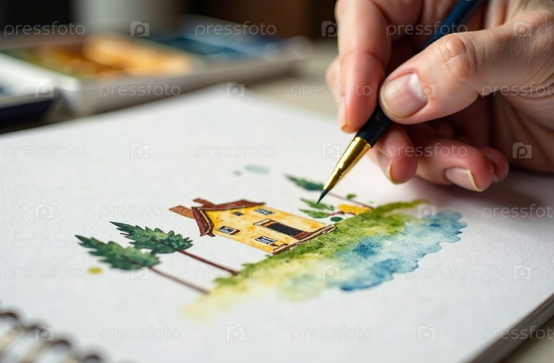 Возьмите кисть и нарисуйте дом, художественный инструмент для любителей рисования. Генеративный искусственный интеллект