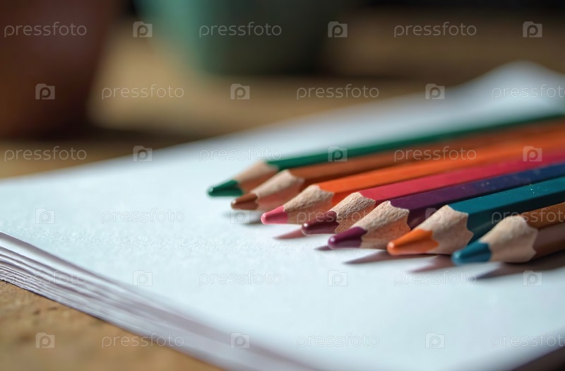 Карандаши лежат на белой бумаге, художественный инструмент для хобби рисования. Генеративный искусственный интеллект