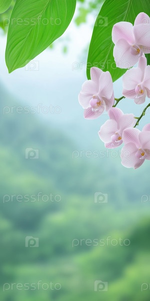 Цветок орхидеи на фоне природы, вертикальные обои