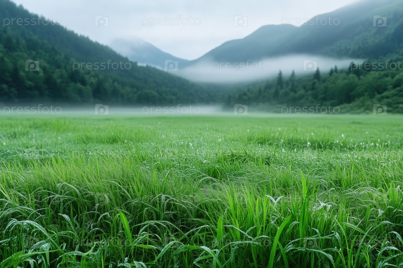 Луг с туманом и горой на заднем плане