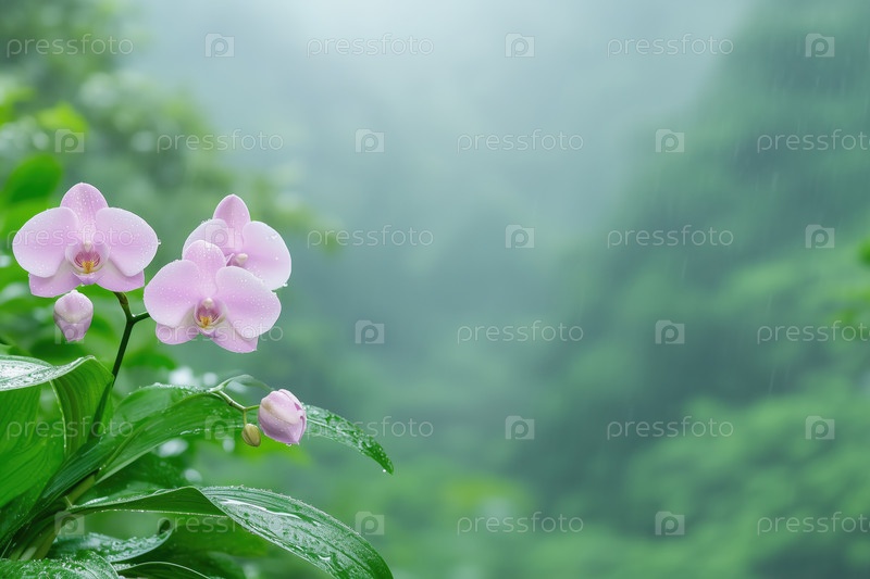 Розовый цветок орхидеи в дождливый день с местом для текста