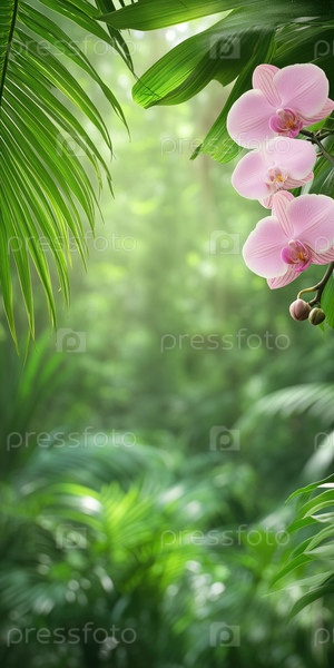 Красивый розовый цветок орхидеи в тропическом лесу. Цветочный фон