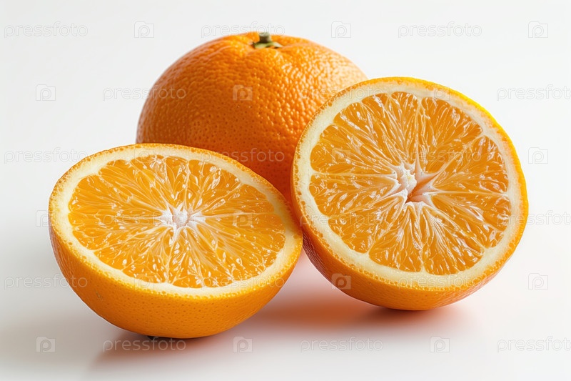 Спелые апельсины на белом фоне