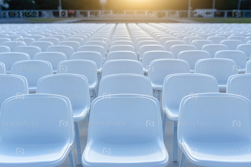 Пустые белые сиденья, готовые к мероприятию. Абстрактный фон