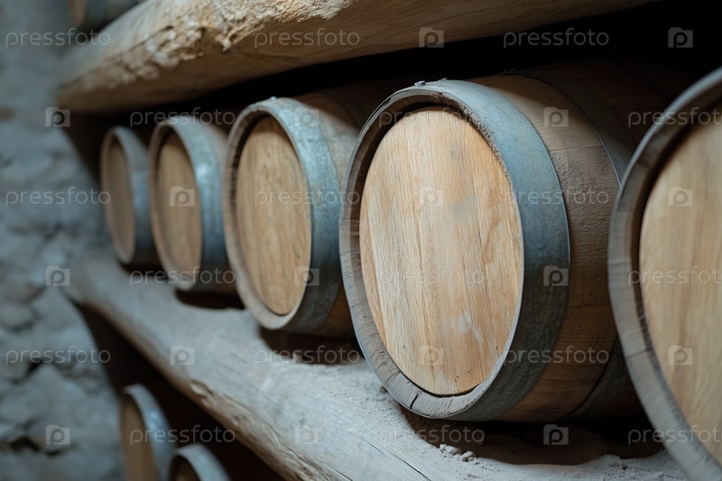 Винтажные винные бочки в погребе винодельни. Виноделие