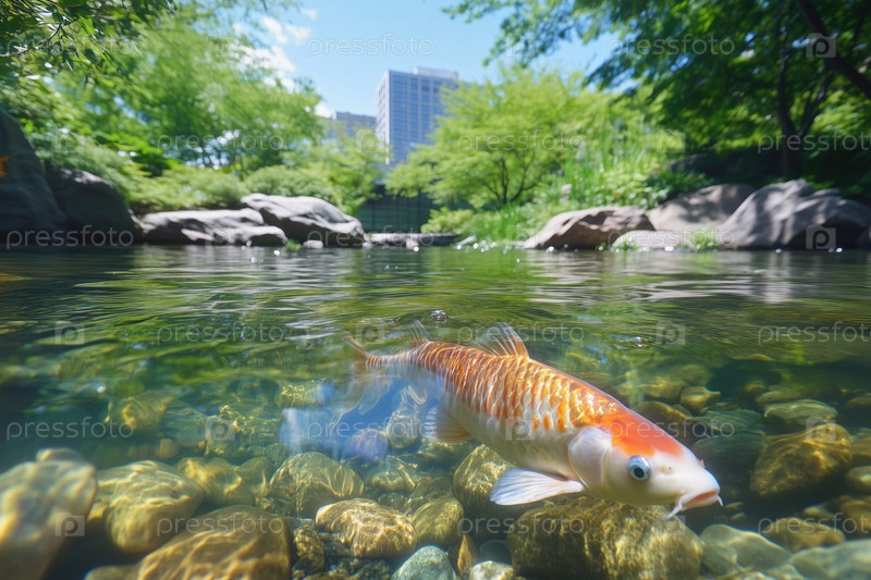 Японский карп кои плавает в пруду