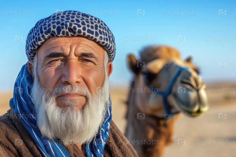 Портрет старика с верблюдом в пустыне