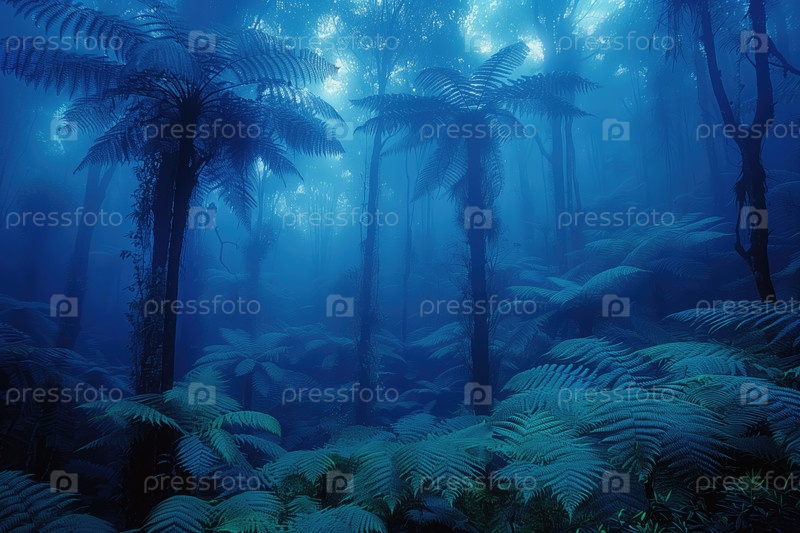 Таинственный туманный темный тропический лес ночью